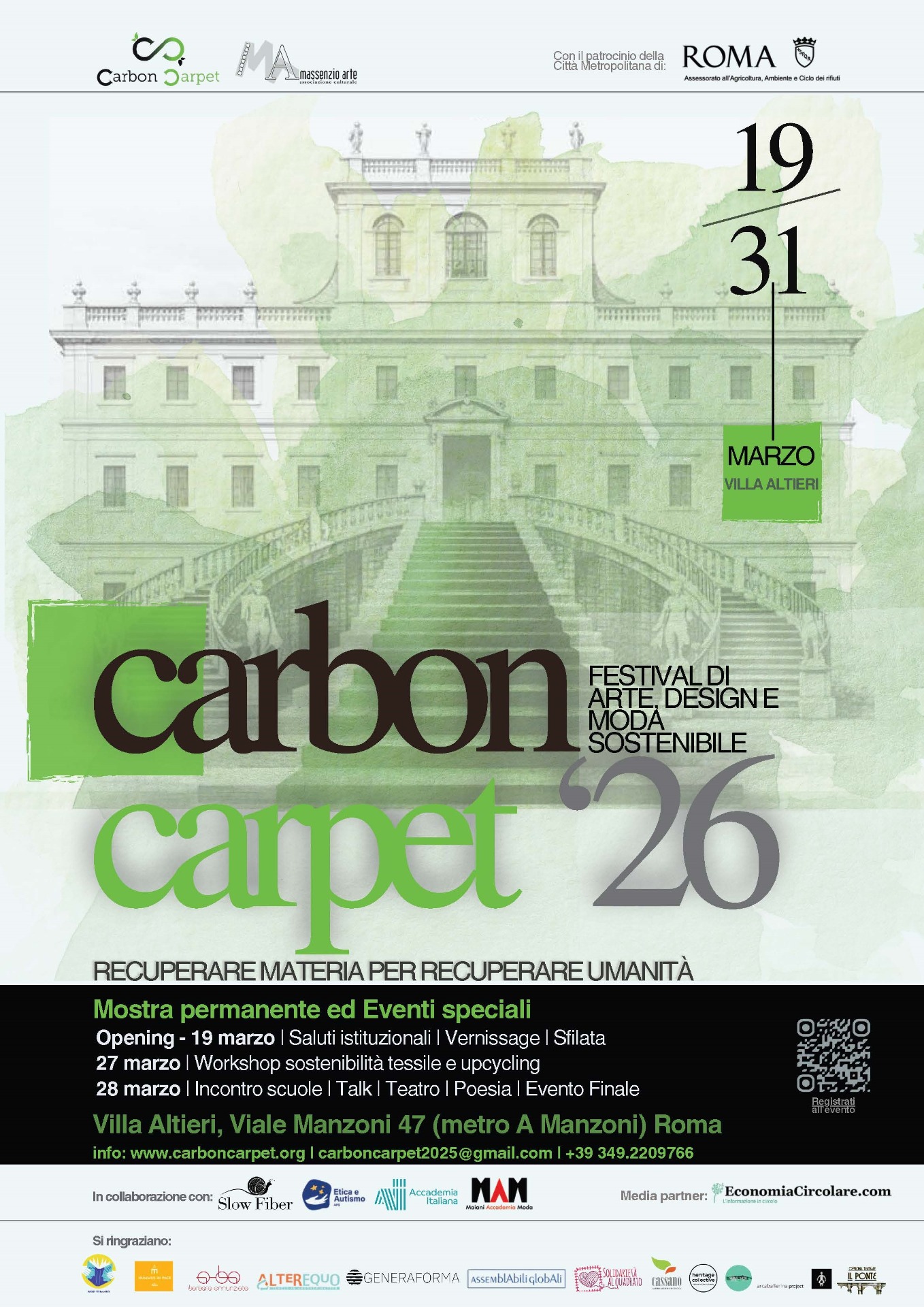 Dal 19 al 31 Marzo prossimi non perdete "Carbon Carpet 2026" a Roma, nella splendida cornice di una prestigiosa Villa Romana. A breve il programma dell'evento - mostra